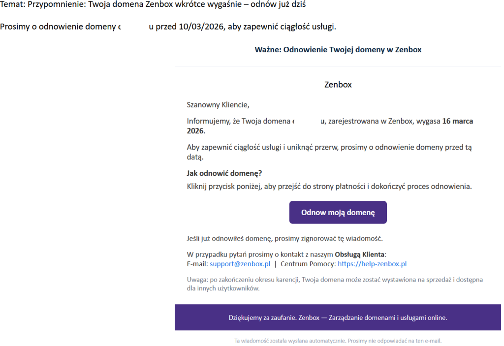 W razie wątpliwości, czy otrzymana wiadomość pochodzi od Zenbox, zawsze zapraszamy do kontaktu z naszym Biurem Obsługi Klienta.